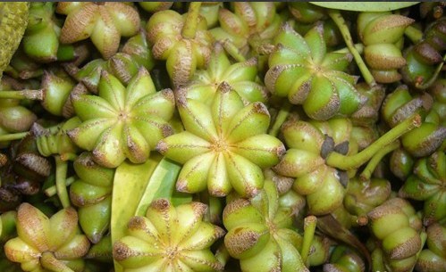 八角果實(shí)成熟時(shí),樹枝上還有花和幼果,所以采果時(shí)不能用竹竿打落果,也不宜搖動樹枝和折枝,只能上樹采摘
